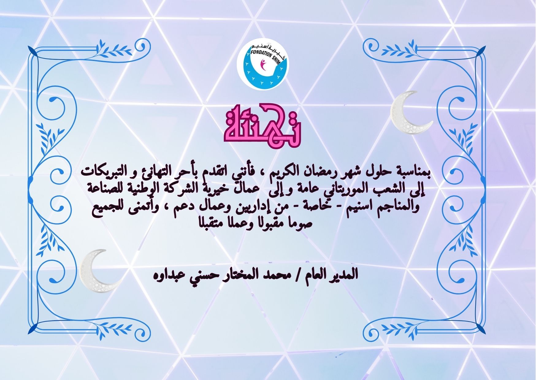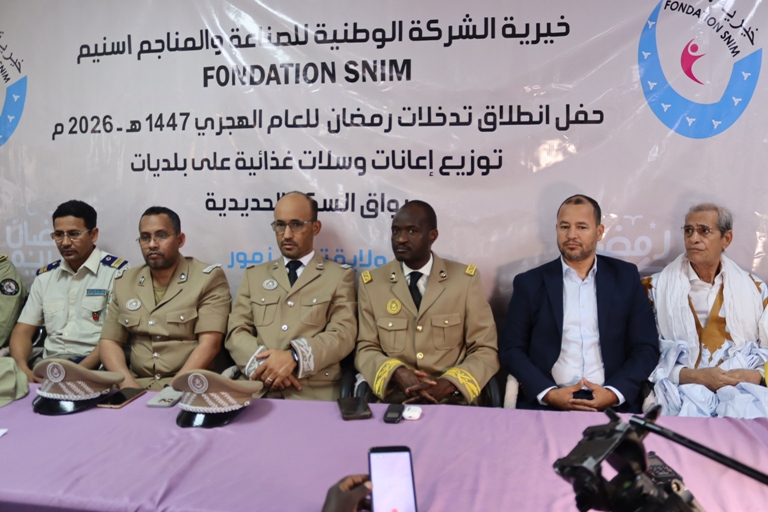أطلقت خيرية الشركة الوطنية للصناعة والمناجم اسنيم اليوم الاربعاء بمباني ولاية تيرس ازمور عملية رمضان للعام الهجري 1447-2026 ، تحت الرعاية السامية للسيد السيد ادريسا دمبا كوريرا والي ولاية تيرس ازمور و بحضور المدير العام المساعد للخيرية السيد امربيه ربه ولد بوحبيني .